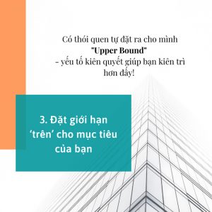 Tại sao bạn cần phải đặt giới hạn ‘trên’ (Upper Bound). Đơn giản vì lúc nào bạn cũng muốn sử dụng hết sức nỗ lực của mình để đạt được tiến bộ, nhưng đôi khi nó sẽ quá nhiều và dễ khiến bạn nản lòng. Giới hạn này giúp bạn dễ dàng duy trì tiến trình của mình một cách bền vững và lâu dài nhất.