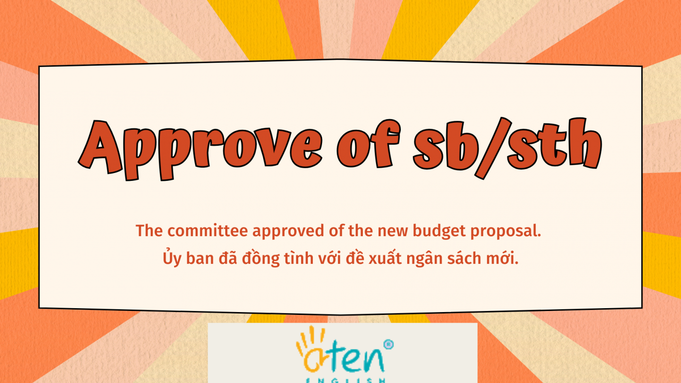 Cụm từ “Approve of” thường được dùng để thể hiện ý nghĩa của việc chấp thuận hoặc đồng ý với một người hoặc điều gì đó.