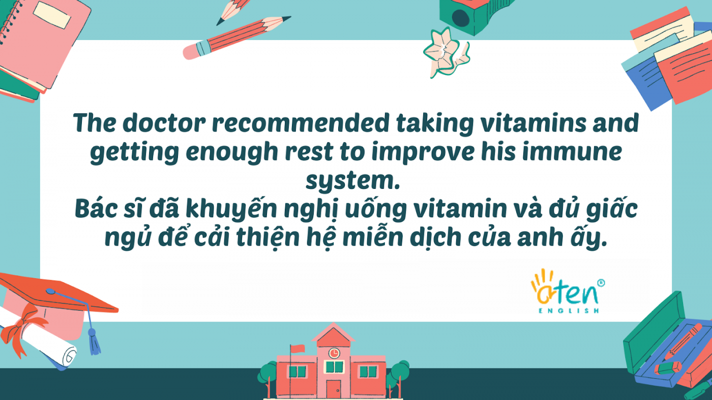 | 6 | have fun | Vui vẻ | He had fun fishing in the lake on the other side of the mountain Anh ấy câu cá vui vẻ ở hồ bên kia núi |