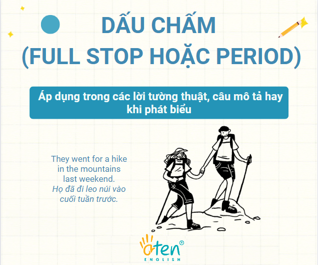 Marks Dấu Chấm Trong Tiếng Anh Có Chức Năng Quen Thuộc Đầu Tiên Chính Là Kết Thúc Một Câu Hoàn Chỉnh, Được Đặt Ở Cuối Câu.
