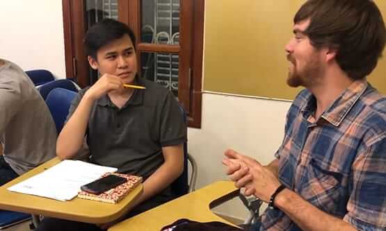 Việc học Anh văn giao tiếp với người nước ngoài sẽ giúp cho kỹ năng nghe và nói của chúng ta trở nên thành thạo rất nhanh, bởi khi đó não bộ sẽ buộc phải thích ứng với môi trường hoàn toàn bằng tiếng Anh, hình thành phản xạ nghe-nói để có thể theo kịp với những gì giảng viên nước ngoài truyền đạt.