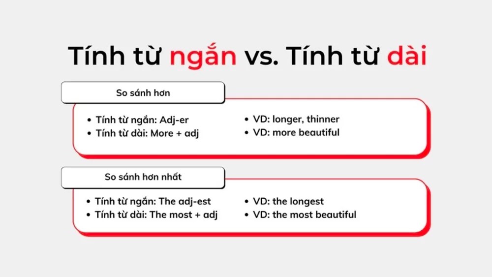 | Tính từ/Trạng từ | So sánh hơn | So sánh nhất |
